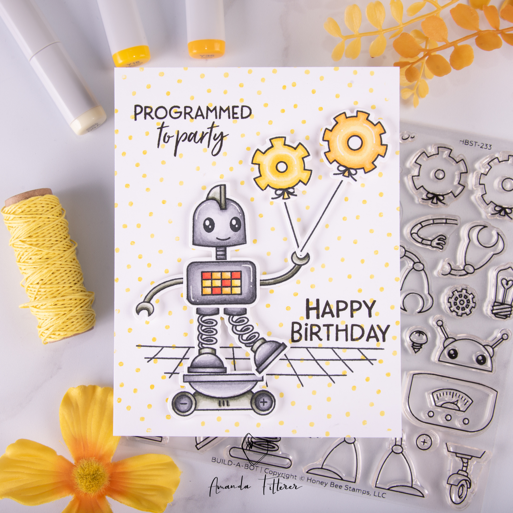 Hey guys! I got this Build-a-Bot stamp set from Honey Bee stamps this week and I’m so in love!! They’re so stinking cute! Go through the photos below to see all the products used and what colors I used!