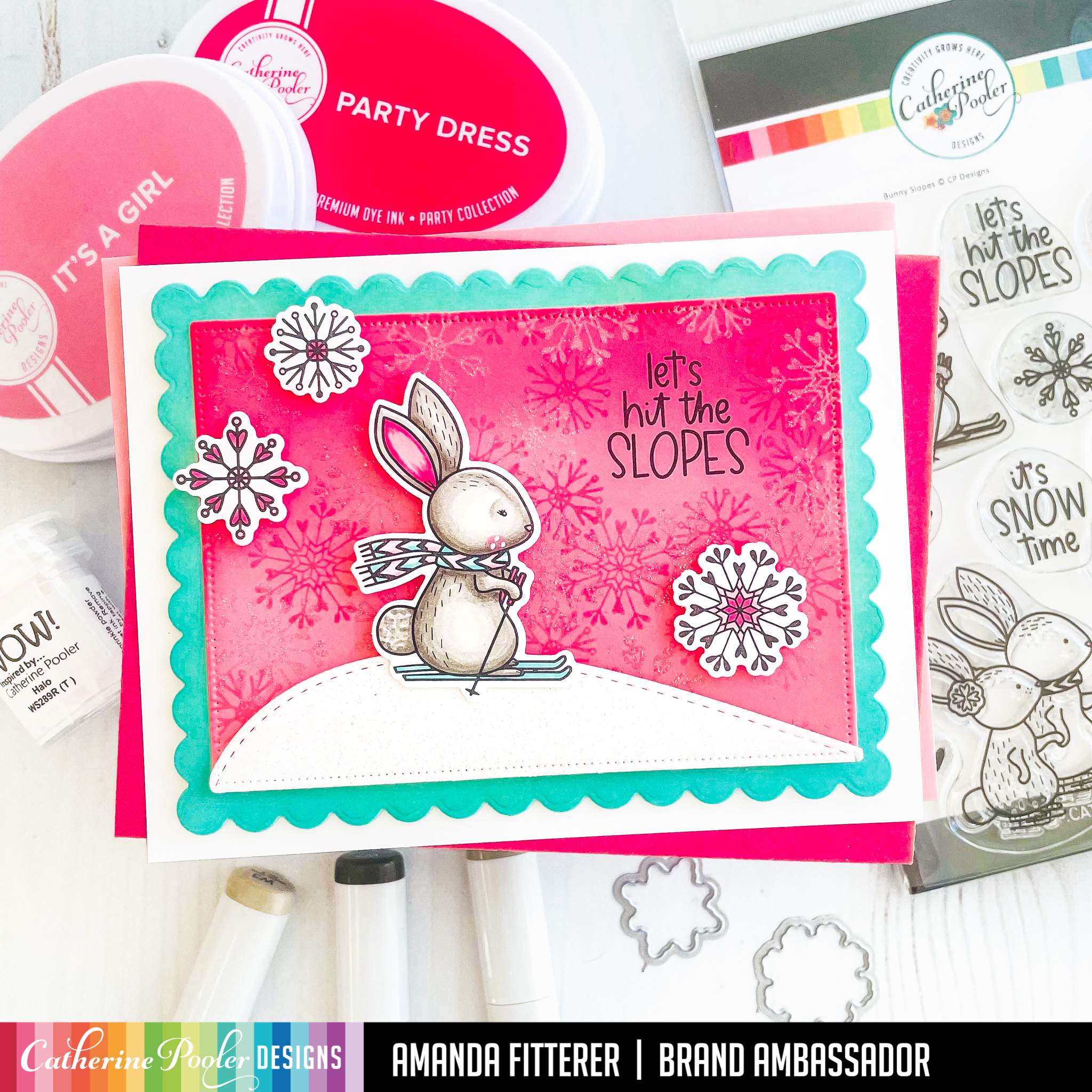 Here is the card I made for the Hop! What better way to celebrate your birthday than with a skiing bunny friend?!