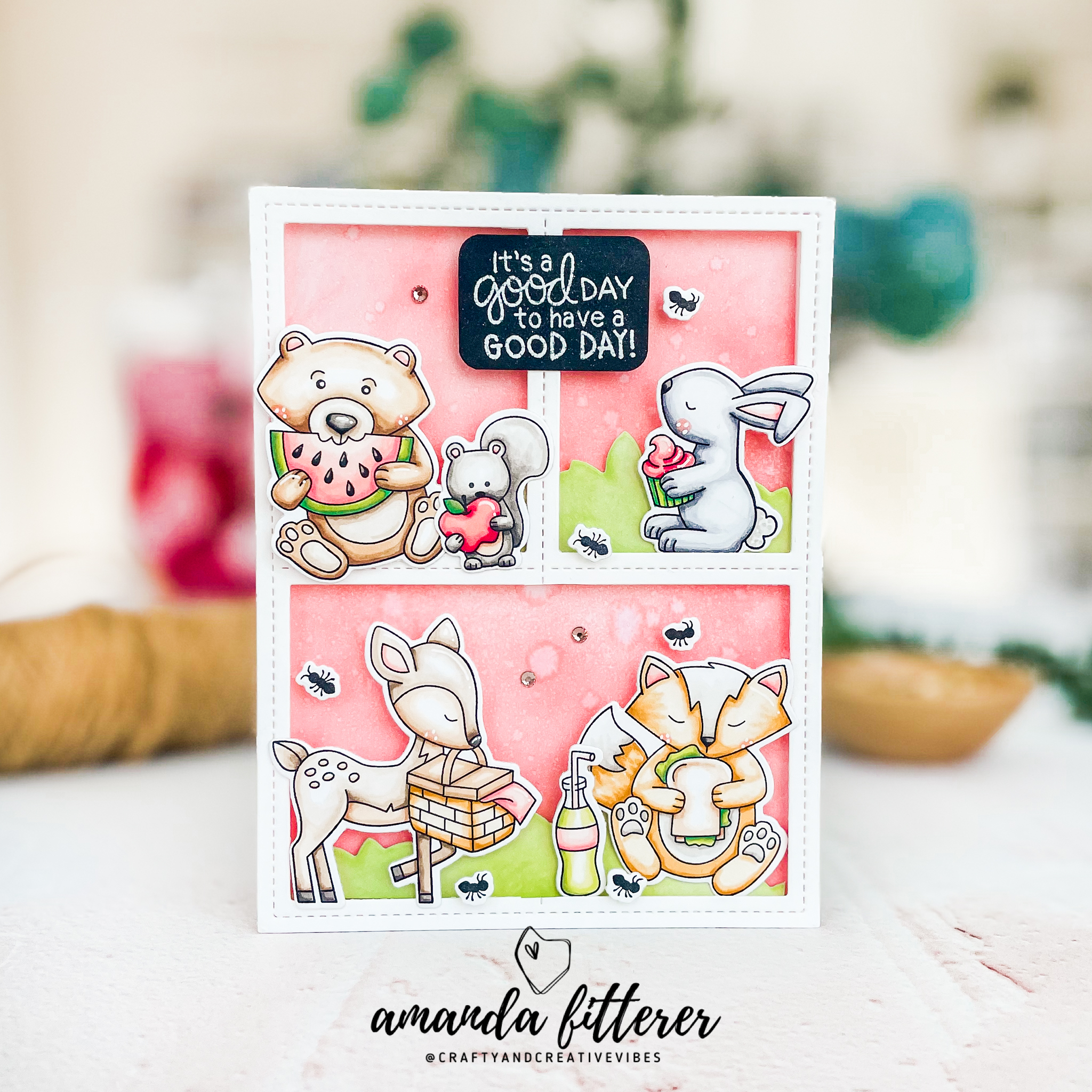 Hey crafty friends! Happy Friday! I hope you’re all having a lovely day! I just got this Newton’s Nook Woodland Picnic stamp set and I couldn’t WAIT to make a card with it!