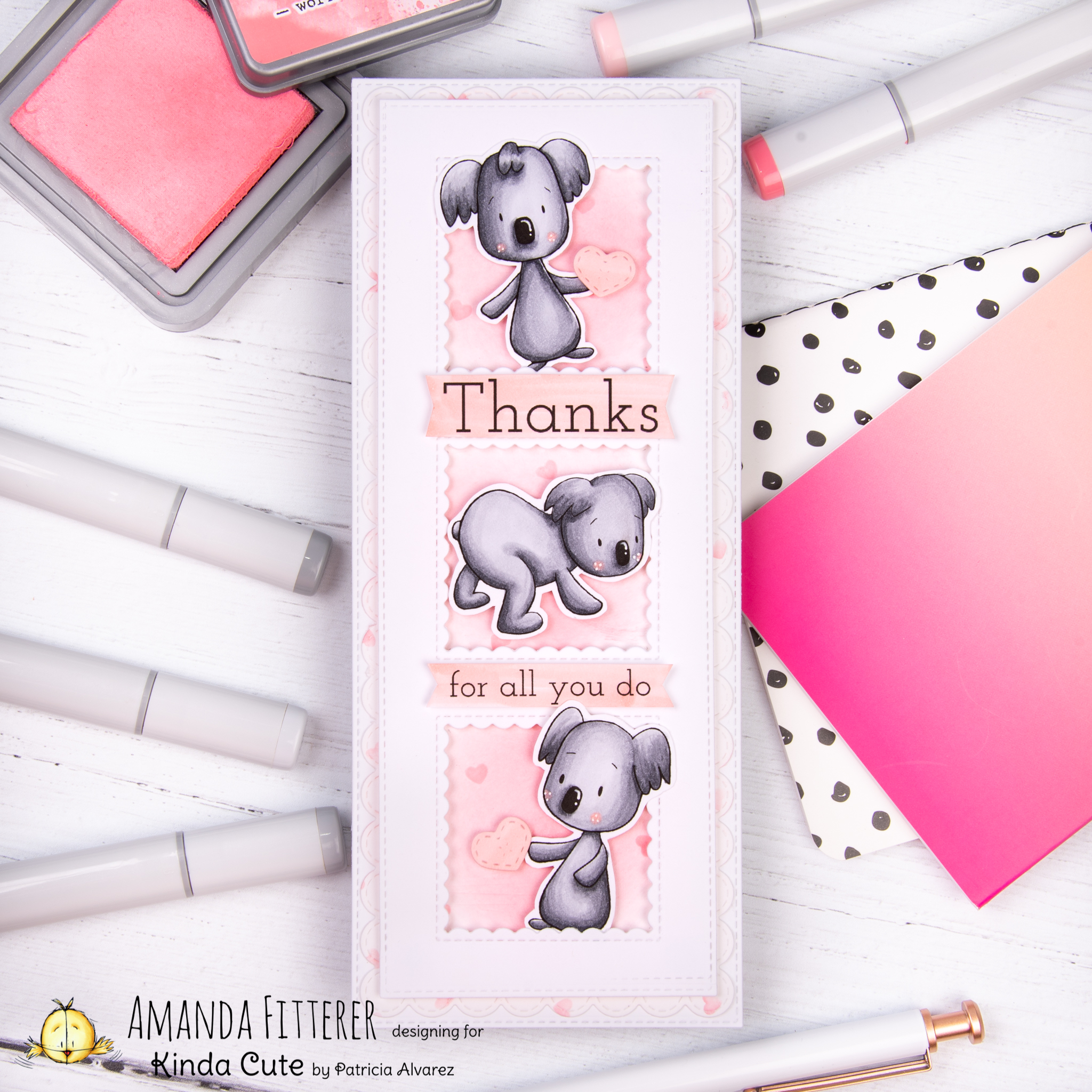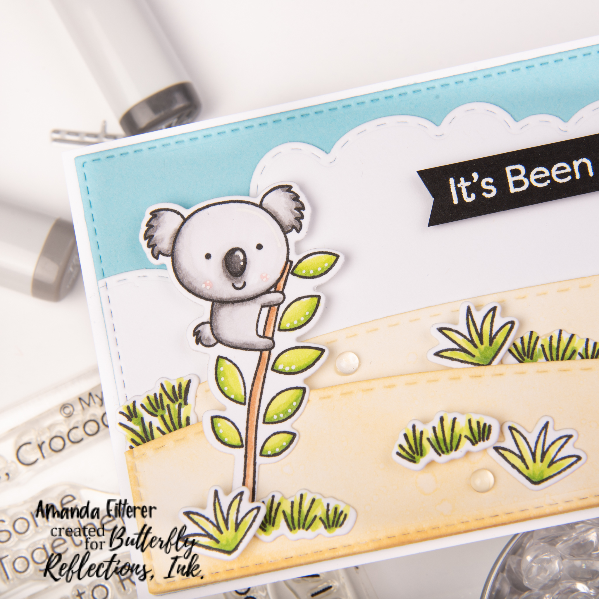 I printed the images on 80lb. Neenah Solar White cardstock. I used my Copic markers to color the koalas. I used: N0, N1, N2, N3, N4, N6, R20. I used precision scissors to cut out the koalas.