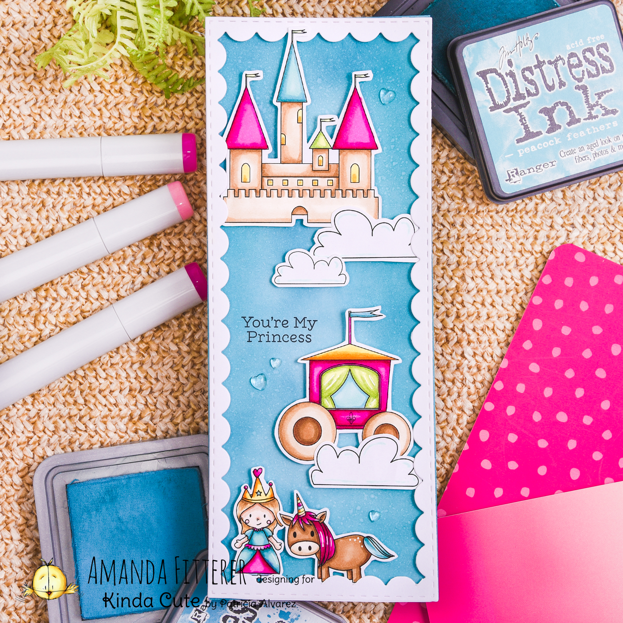 Today, I am sharing a magical slimline card using the Princess Bundle Set from Kinda Cute by Patricia Alavrez.